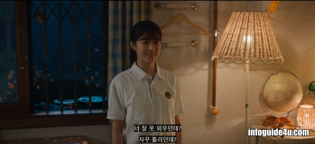 희수는 웃으며 봉석에게 "너 잘 못 외우던데? 자꾸 틀리던데?"라고 말하며 놀립니다.