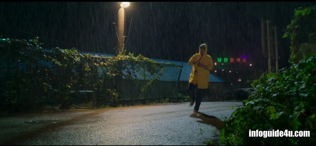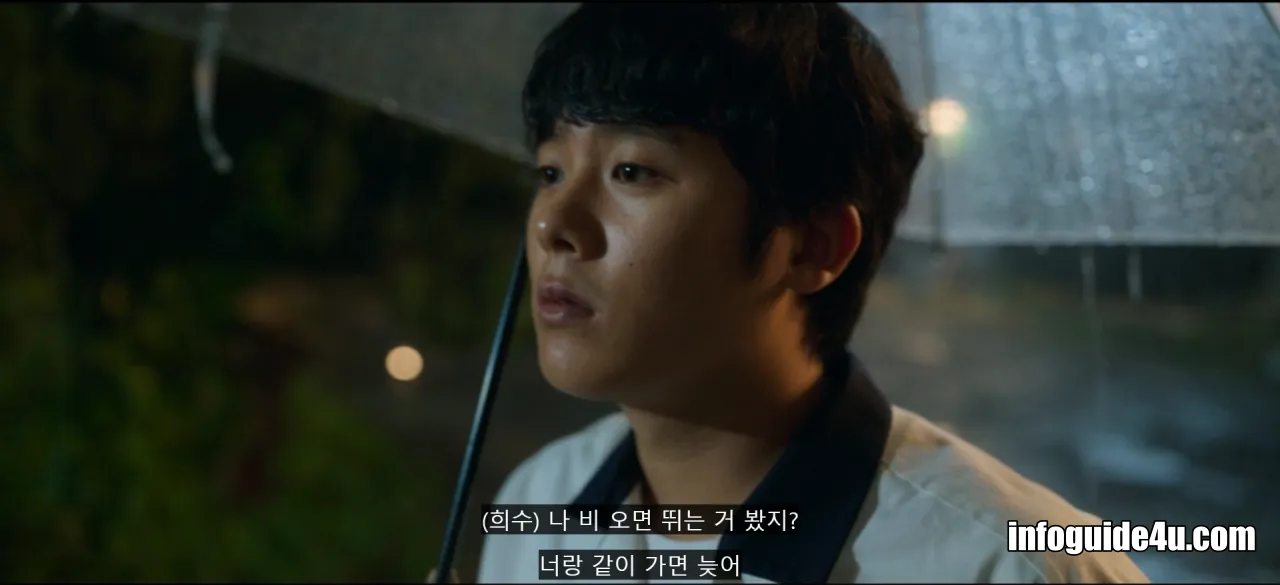 미현의 충고에 정신을 차린 봉석은 황급히 우비를 입고 뛰쳐나갑니다.