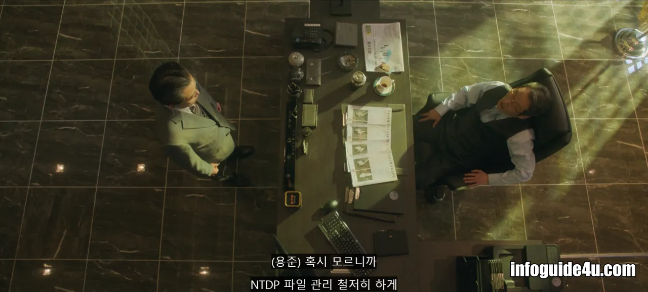 용준은 전직 요원들이 암살당하고 있는 현재 상황을 이야기하며 NTDP 파일 관리를 철저하게 하고 옛 파일은 폐기하라고 지시합니다.