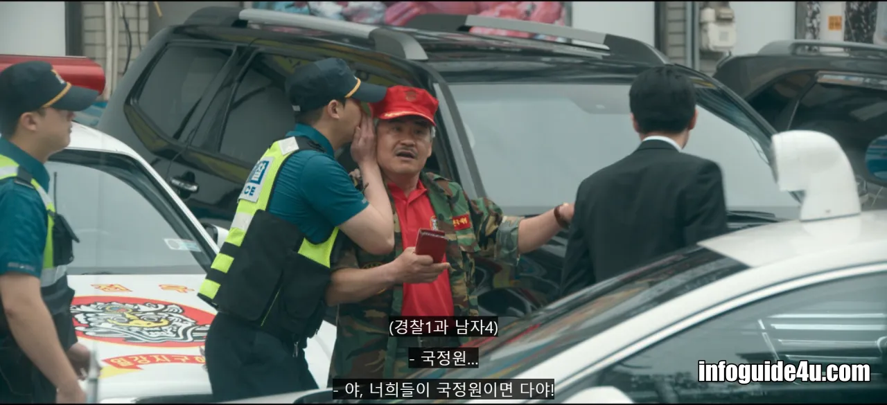 주원의 연락을 받고 해병대 출신 남성이 현장에 왔는데요. 자신의 차에 남겨진 선명한 문콕 흔적을 보고 국정원 직원들에게 행패를 부리기 시작합니다. 경찰이 넌지시 국정원이라고 언급해 주자 오히려 큰 소리로 "너희들이 국정원이면 다야!"하고 소리를 지릅니다.