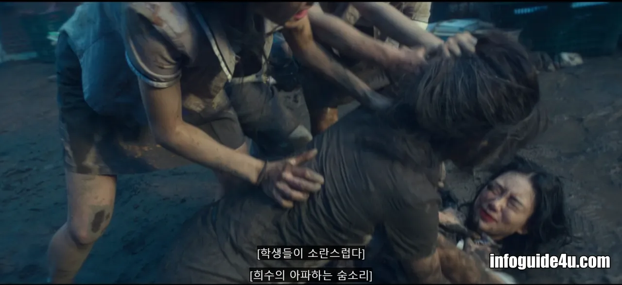 이때 일진 우두머리의 남자친구가 등장합니다. 일진의 만류에도 불구하고 희수에게 야구배트를 무자비하게 휘두릅니다.