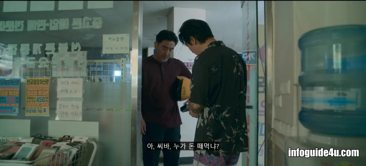 이에 주원은 자신은 포항 구룡포 출신인데 그 말투는 어디 경상도 말투냐고 이상한 말투 쓰면 아가리 죽 잡아 째겠다고 으름장을 놓습니다. 핸드폰 수리점 사장은 그런 주원의 기에 눌려 고분고분해졌는데요.