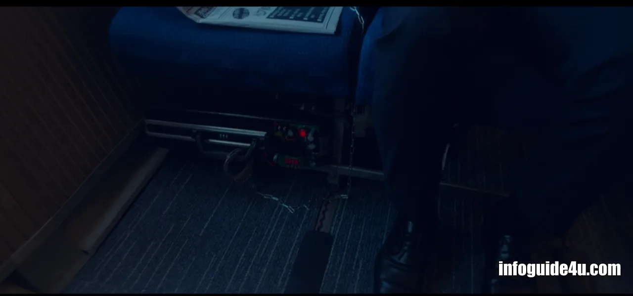 비행기 안에 앉아 있던 한 남성이 폭탄을 작동시킨 후 태연하게 신문을 보기 시작합니다.