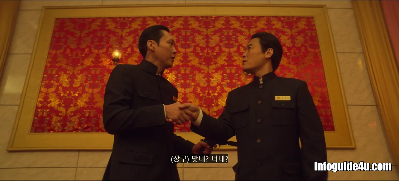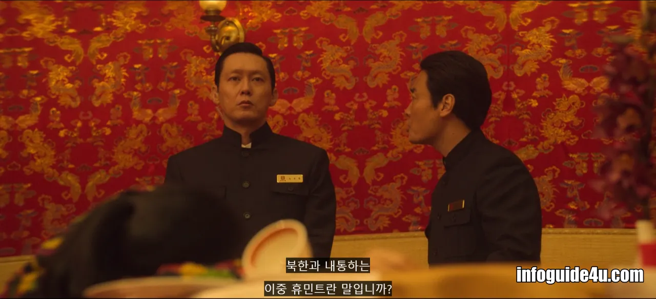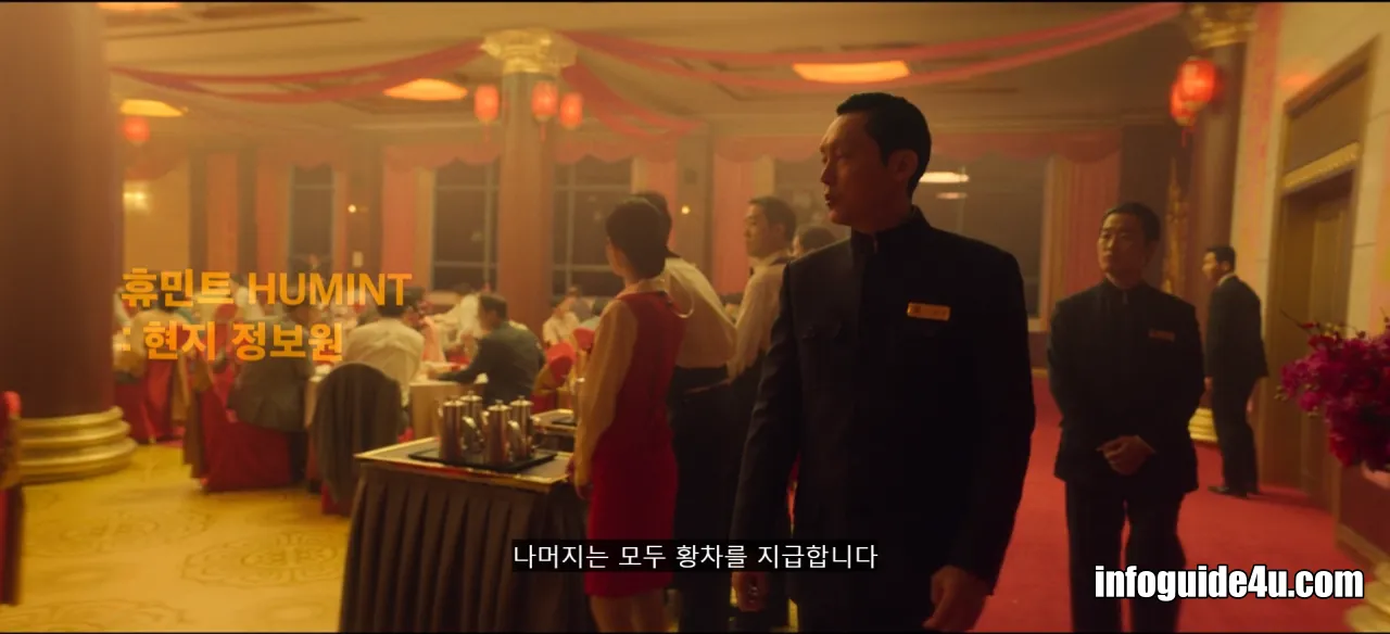 호텔의 직원들은 모두 위장한 안기부 요원들이었는데요. 이들의 대장격인 상구는 요원들에게 자신이 지시하는 휴민트(현지 정보원)에게만 흑차를 지급하고 나머지는 모두 황차를 지급하라고 말합니다.