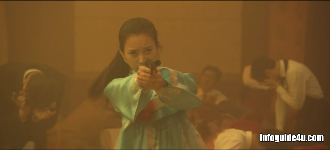 미현은 정확한 조준으로 문의 잠금장치를 총으로 쏴서 열어버립니다. 그리고 숨어 있는 사람들에게 신호를 주는데요.