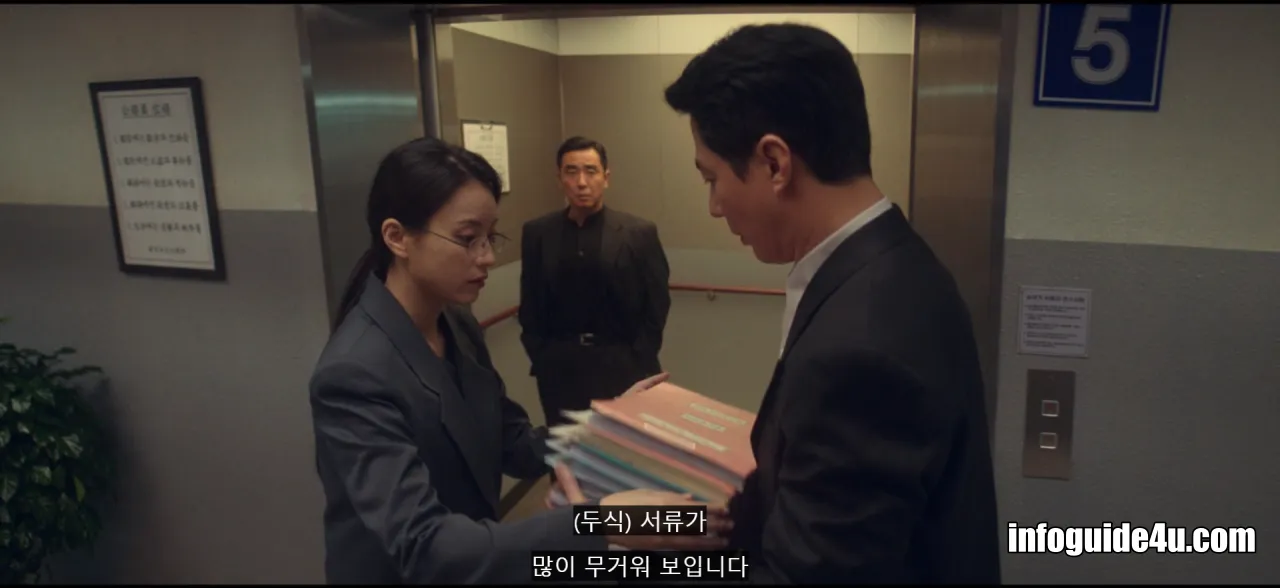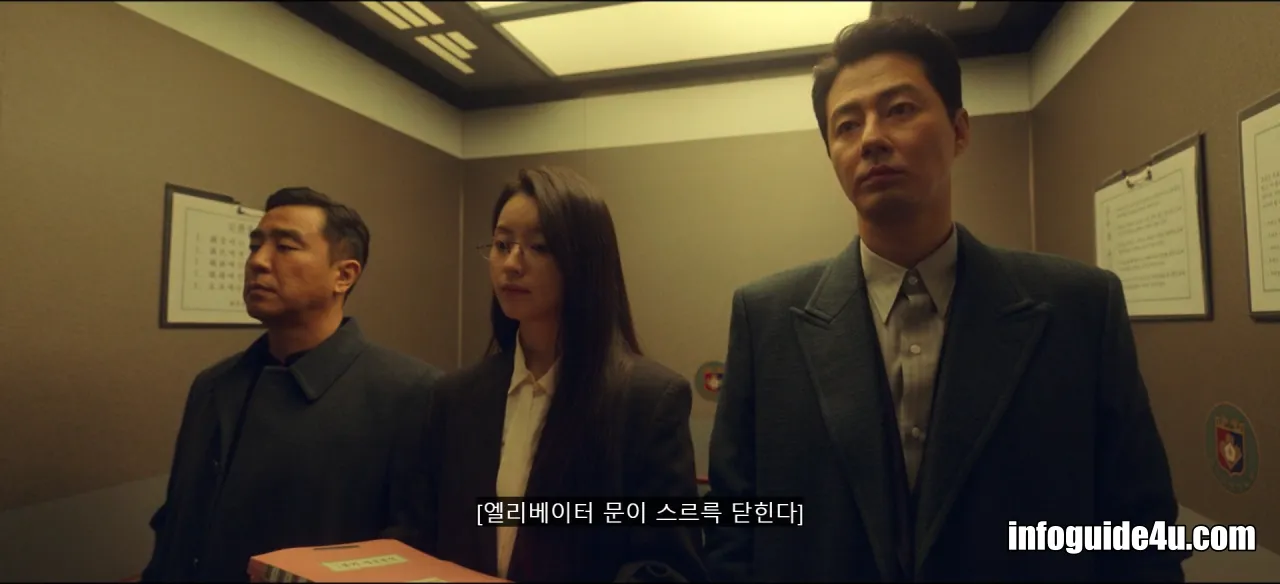 드디어 작전 첫날, 미현은 일부러 두식이 안기부에 올 때를 기다려 엘리베이터에 같이 탑승하는 데 성공합니다.