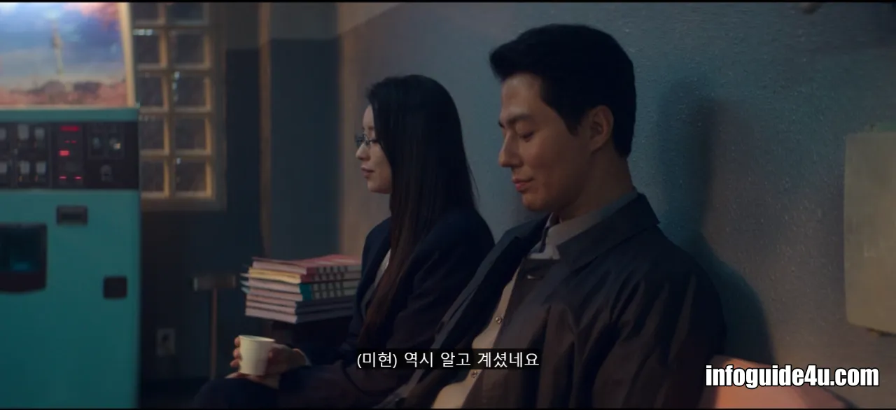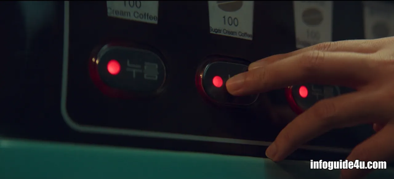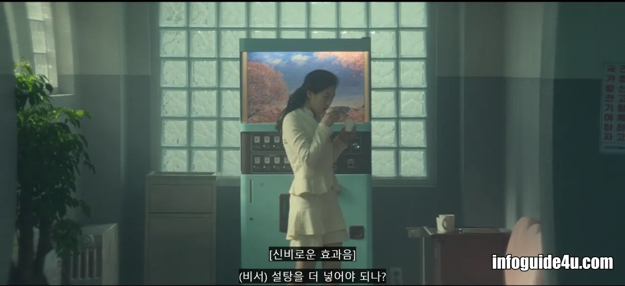 두식은 인사를 끝내고 자리를 뜨려고 하려는 미현에게 동전이 있냐고 물어봅니다. 이에 미현은 두식에게 커피를 한 잔 뽑아줍니다. (이때 사실 두식에게는 동전이 있었습니다. 미현을 붙잡기 위해 일부러 동전이 없는 척한 것으로 보입니다.)