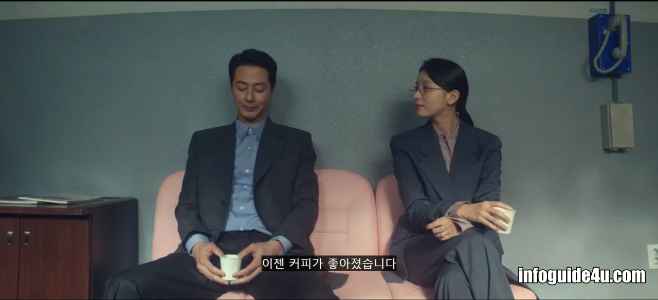 둘은 자리를 뜨지 않고 어색하지만 같은 공간에서 커피를 마시기 시작합니다.