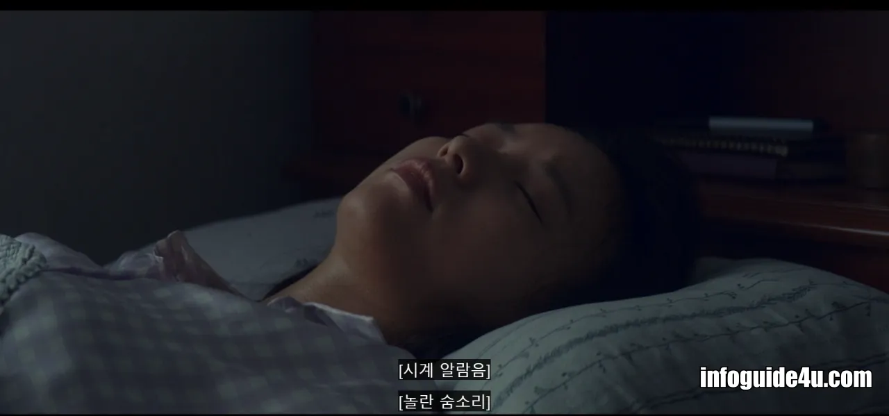 미현은 알람 소리에 놀라 꿈에서 깨서 일어납니다.