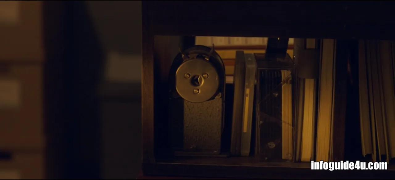 미현은 예리한 시력으로 조그만 기계의 틈 안에서 카메라 렌즈의 불빛이 깜빡거리는 것을 보게 됩니다.