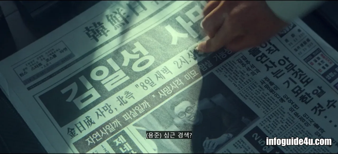 미확인 첩보는 사실로 확인되었으며 북한의 공식 발표가 있었습니다. 남북 정상회담이 열리기까지 불과 보름 밖에 남지 않은 시점이었습니다. 용준은 김일성의 사망원인이 피살이 아니라 심근경색이라는 것에 분노하여 휘하에 있는 간부들을 소집합니다.