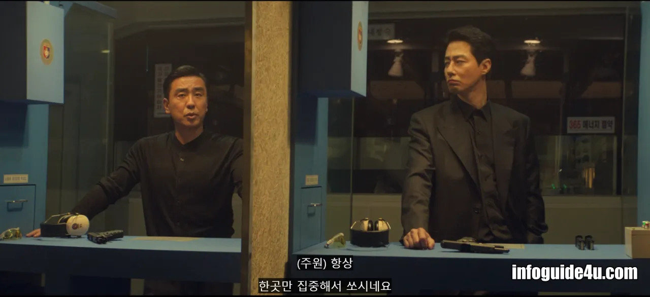 두식은 지하에서 주원과 함께 총격 연습을 하고 있습니다.
