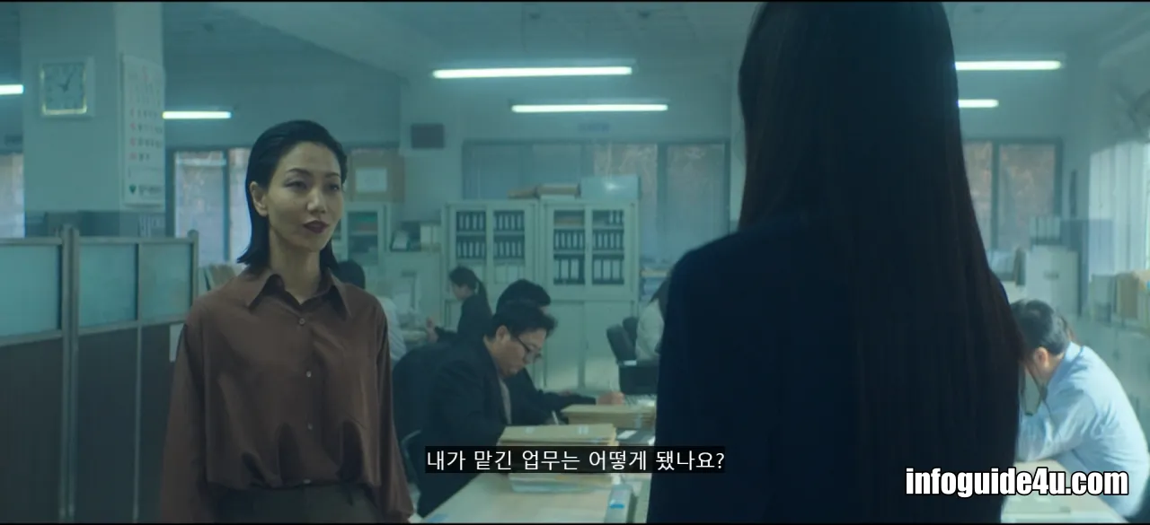 미현이 사무실을 나가자마자 그때까지 숨죽이고 있던 직원들이 한숨을 쉬는대요. 팀장인 운규에게 찍힌 미현 때문에 눈치를 보고 있는 것으로 보입니다.