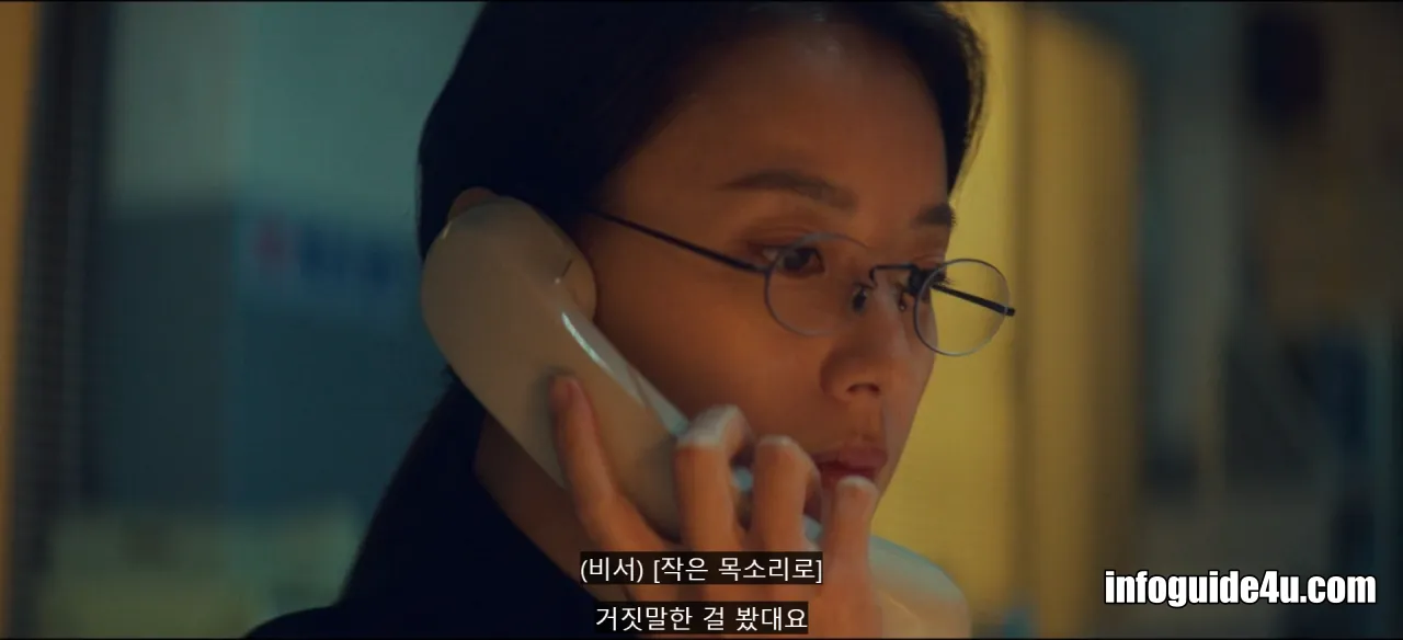 비서는 용준이 하는 말을 듣고 바로 미현에게 전화를 걸어 "거짓말한 걸 봤대요."라고 전달해 준 뒤 전화를 끊습니다.