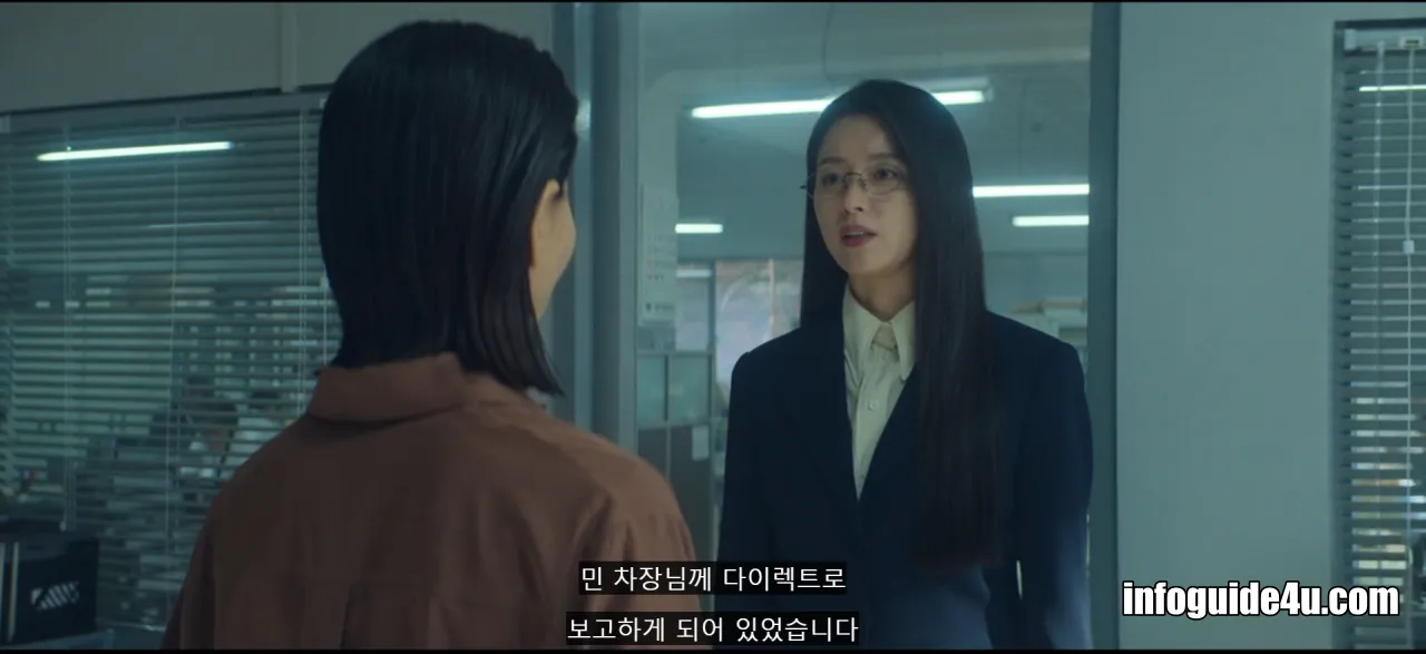 미현은 차장실에서 나가며 직속 상사인 운규와 마주칩니다. 운규는 그 비밀 임무가 여태 안 끝났냐며 비아냥거렸지만 미현이 방금 끝났다고 이야기하자 그럼 나도 이제 됐다며 바로 차장실로 들어가 버립니다.